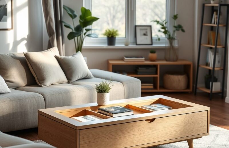 Categories Małe mieszkania i kawalerki — aranżacja Ława ze schowkiem do małego salonu — jak wybrać funkcjonalny mebel, który optymalizuje przestrzeń i porządek